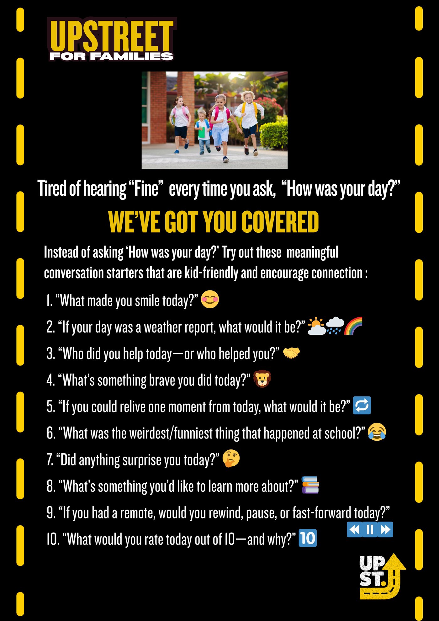 💬 That’s why we’ve created 10 kid-friendly conversation starters to help you move past “fine” and into something real.